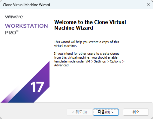 2. 기존 VMWare의 이미지 복사(Clone) 하기