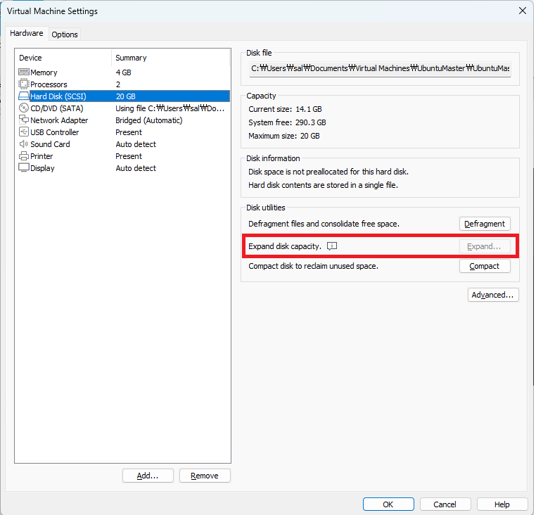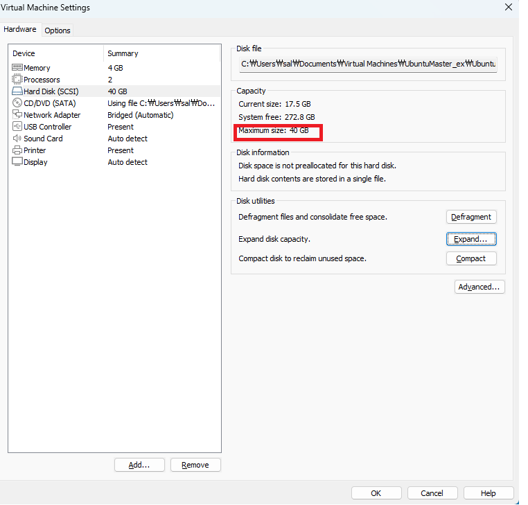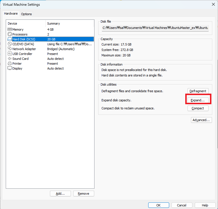 # VMWare 17 Pro HDD 용량 늘리기 순서