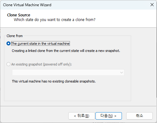 "The current state in the virtual machine"을 선택합니다. 다음을 눌러주세요