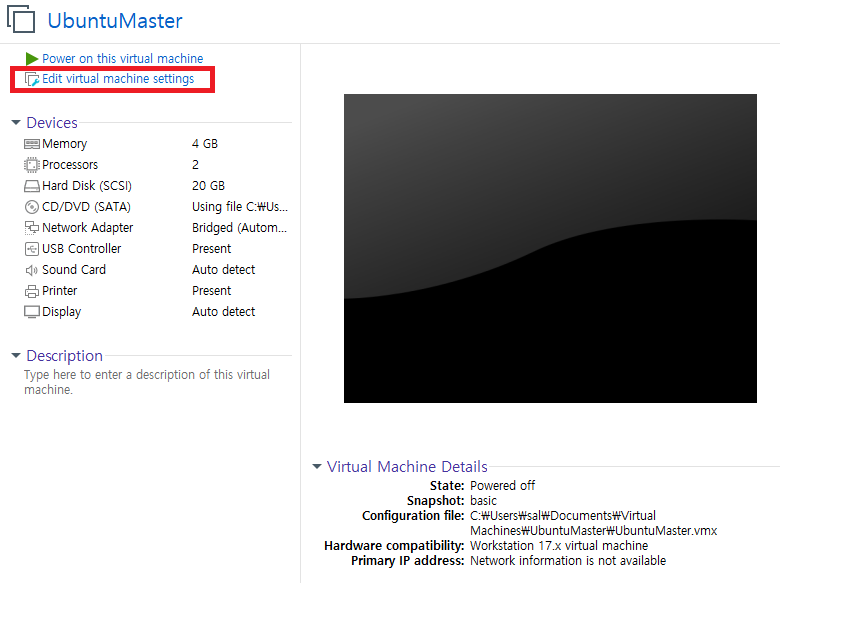 그러면 다음과 같이 Edit virtual machine settins가 활성화됩니다.