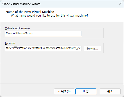 다음과 같이 이제 복사할 VM의 이름과 위치를 지정해 줍니다.